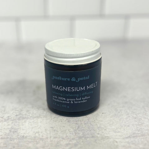 Ingredients: 100% Grass-Fed Tallow, Magnesium Chloride, Distilled Water, Cold-pressed Jojoba Oil*, Beeswax, Lavender Essential Oil*, Frankincense Essential Oil*, Rosemary Essential Oil*. *Organic