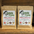 Loose leaf hibiscus herbal tea infused with fruiting body mushroom blend. Caffeine free.